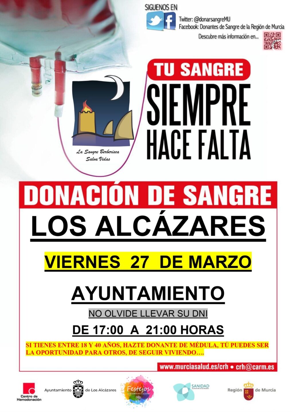 La sangre berberisca da vida. Por eso, en el contexto del 25 aniversario de las Incursiones Berberiscas, el Ayuntamiento de Los Alcázares acogerá este viernes, 27 de abril, una campaña de donación de sangre gracias a la colaboración del Centro Regional de Hemodonación.