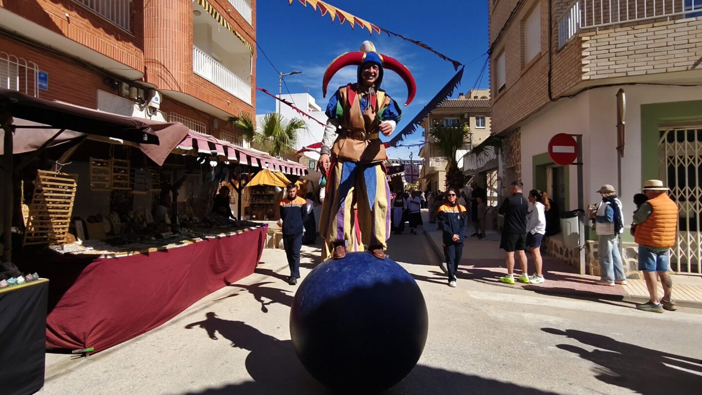 Acróbatas, bufones y personajes mágicos iniciaban así sus espectáculos itinerantes haciendo que Los Alcázares se sumerja en un auténtico viaje en el tiempo. A su paso, han acaparado las miradas de quienes han querido disfrutar en primera persona del Mercado Medieval, que se podrá visitar hasta el próximo domingo.
