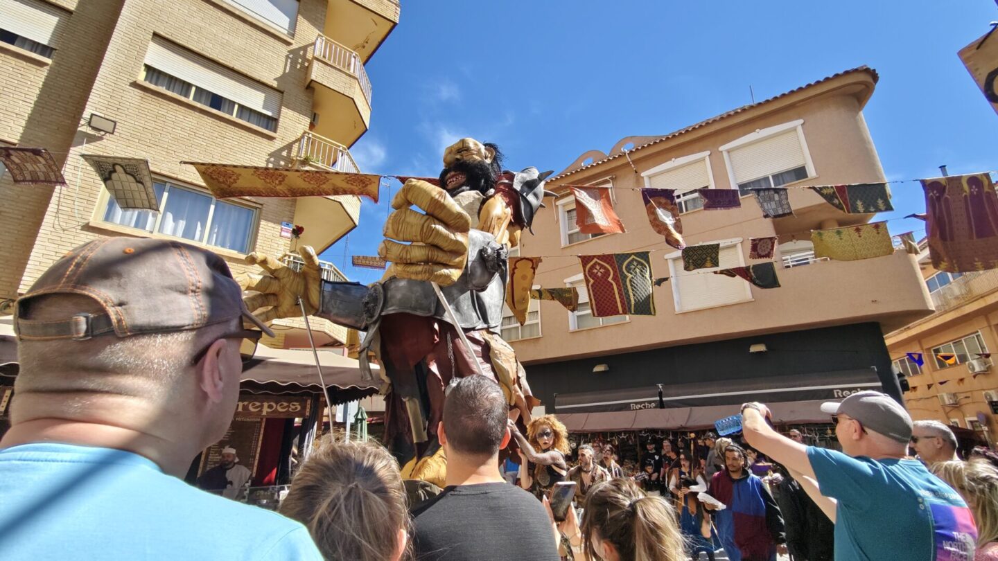 Por las calles del centro urbano de Los Alcázares, esta mañana los viandantes se cruzaban con un personaje muy especial: un gigante que se abría paso entre la gente para inaugurar el gran Mercado Medieval del 25 aniversario de las Incursiones Berberiscas en el Mar Menor.