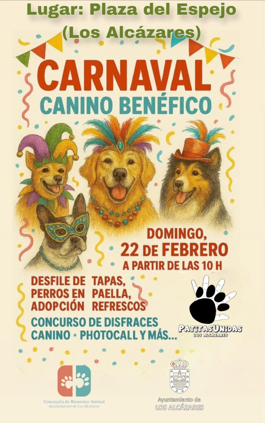 La última cita de esta programación será el domingo 22 con el Carnaval Canino Benéfico, organizado junto a la Concejalía de Bienestar Animal y Patitas Unidas. En la Plaza del Espejo, desde las 10:00 horas, habrá un desfile de perros en adopción, paella, refrescos, concurso canino de disfraces y photocall para disfrutar con las mascotas esta fecha tan destacada en el calendario alcazareño.